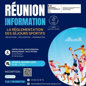 Nous vous informons que les bureaux du CDOS Hautes-Alpes seront fermés du 23 décembre 2025 au 5 janvier 2026 inclus. En cas de nécessité, une