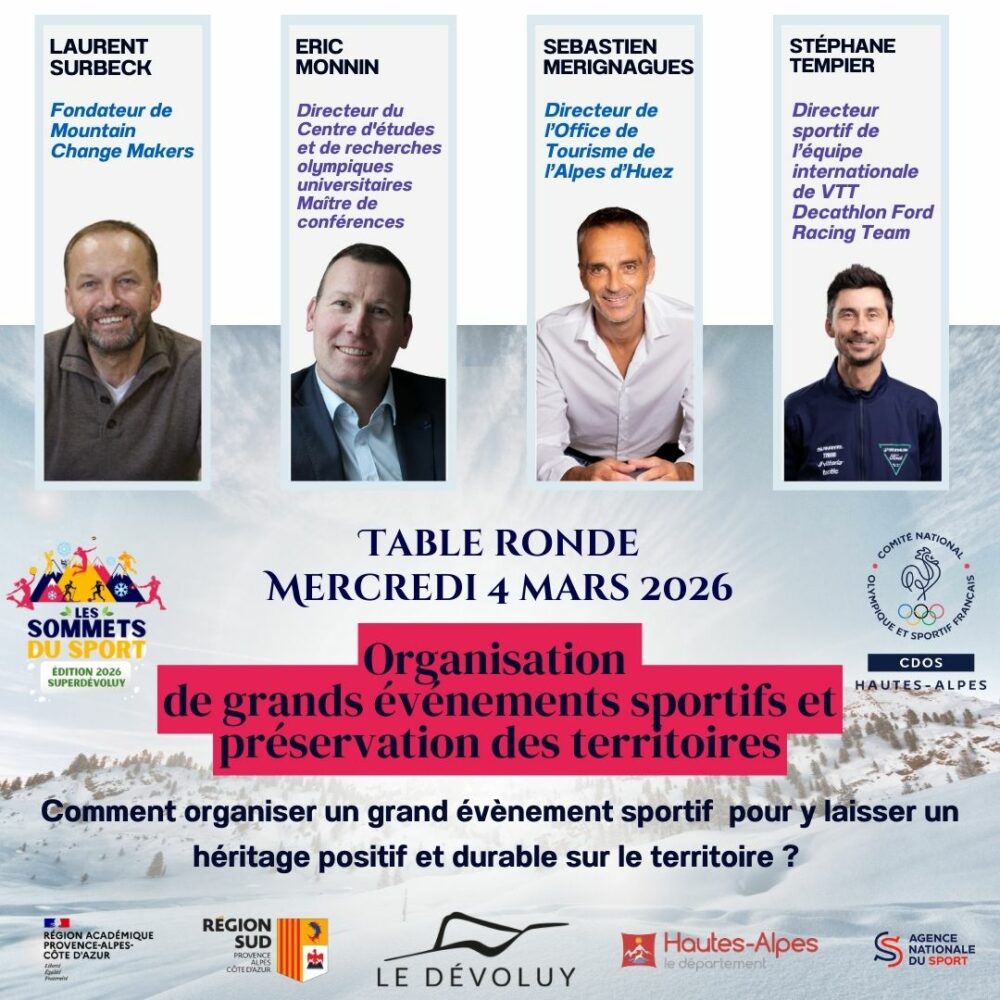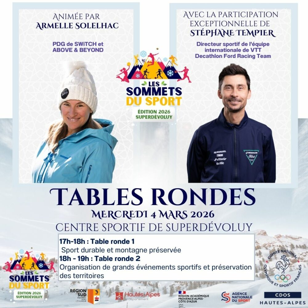 Le mercredi 4 mars 2026, à Superdévoluy, Les Sommets du Sport – Édition 2026, rassemblent décideurs, experts et acteurs du terrain pour deux tables rondes stratégiques :