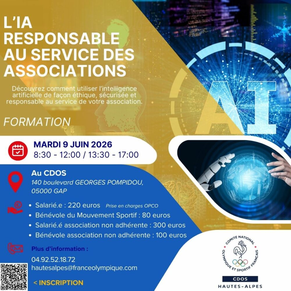 Elle propose une approche concrète, rassurante et adaptée aux réalités du secteur associatif : outils simples, limites à connaître, bonnes pratiques d’utilisation responsable, articulation avec la formation RGPD.